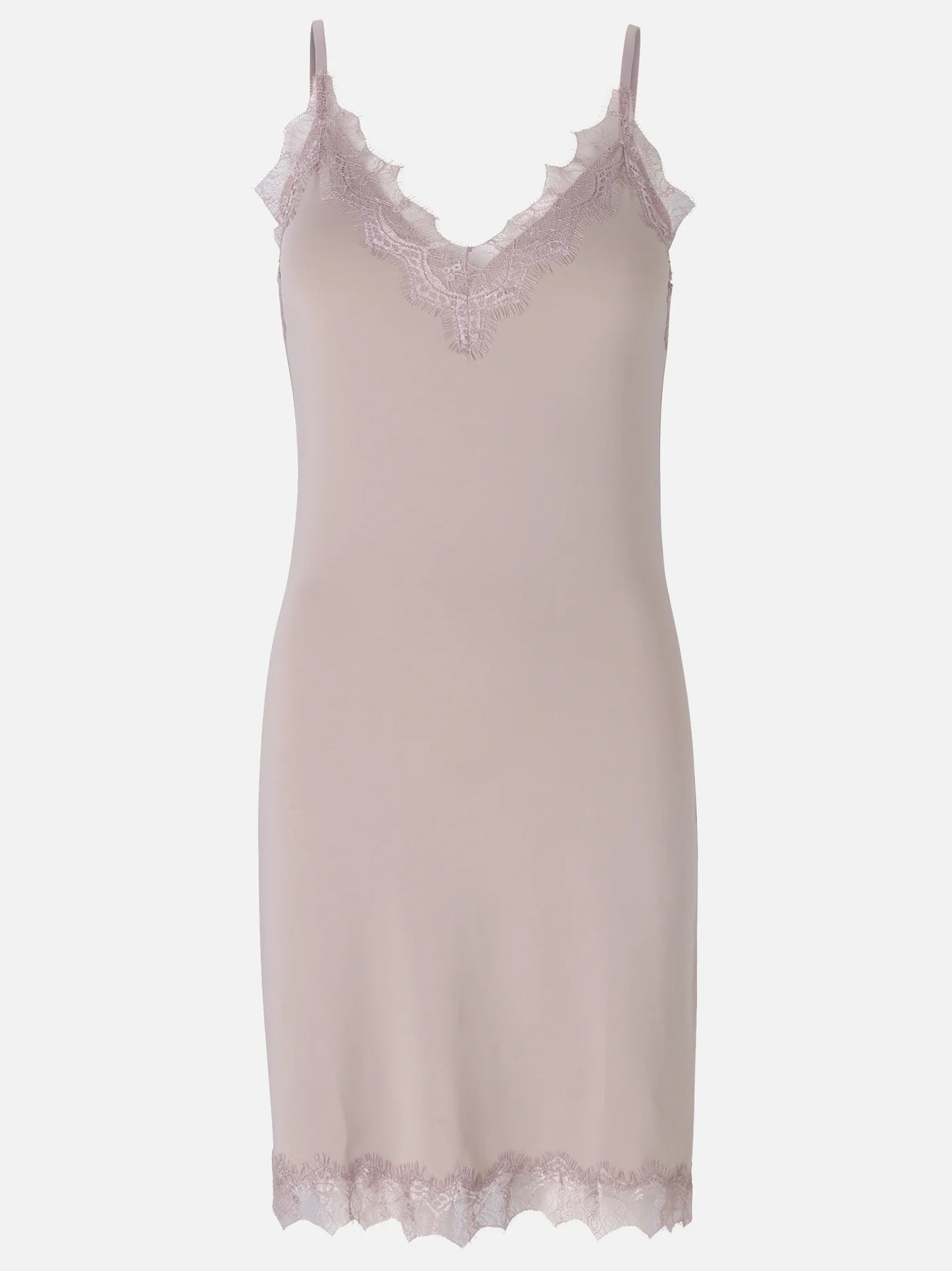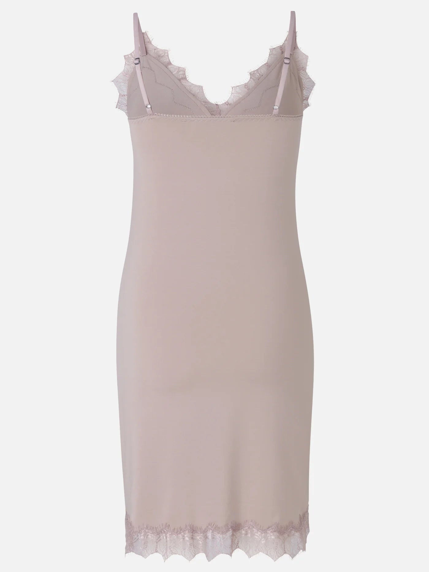 Babette Silk Top U-Neck With Lace, Soft Rose, Long