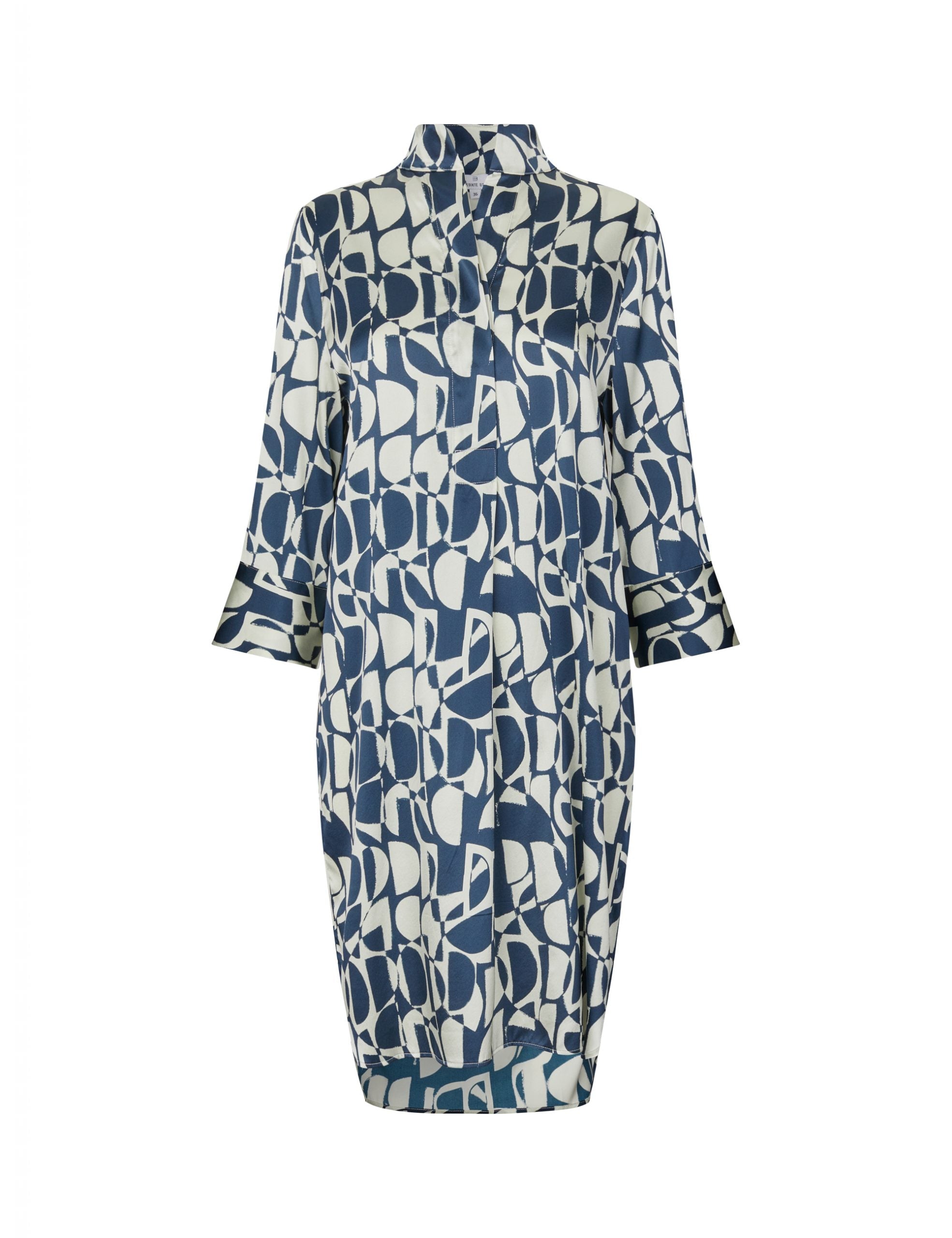The most beautiful tunic dress, with a really beautiful floral print in a strong silk quality, which makes it beautiful and versatile with the classic look and cut. The dress has a beautiful stand-up collar, a 3/4 length sleeve and a series of pleats in the back, which makes it very spacious and exclusive to look at.