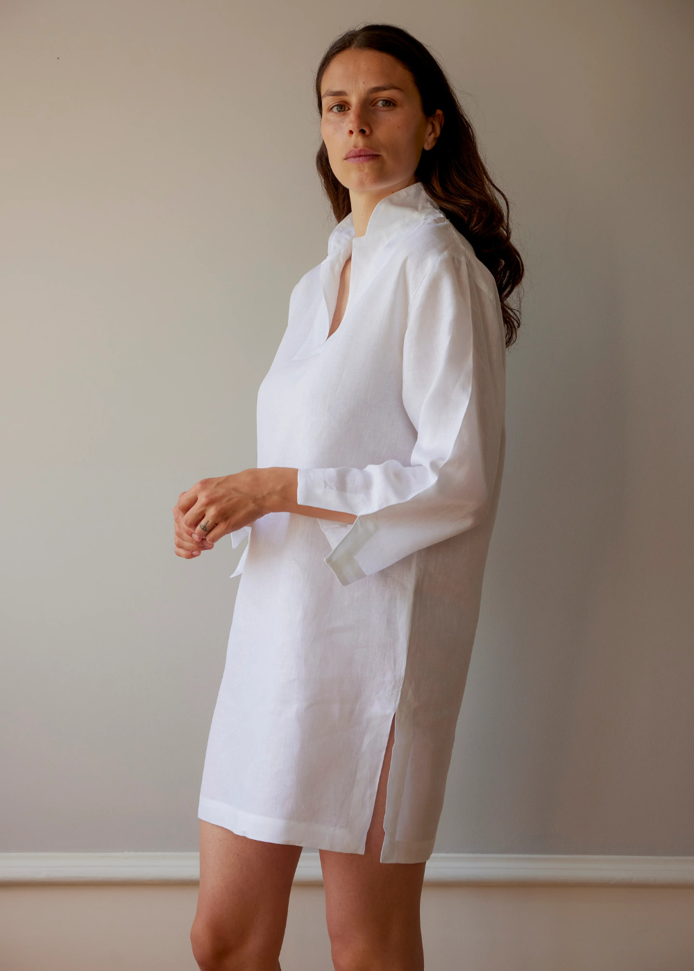 Denne serie af nattøj eller loungewear er så delikat, at du altid vil sikre, at den er klar til brug! Geismars sikrer den lækreste kvalitet, som giver den bedste komfort og samtidig et eksklusivt udtryk. Den smukke, lange skjorte har slids i siderne og kinaflip er forsynet med en enkel piping i hvid. Elegant slids ved ærmets afslutning,