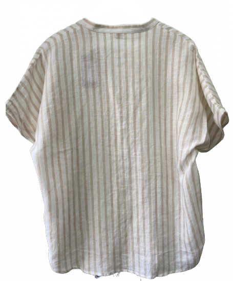 Denne populære tunika skjorte er tilbage igen: Denne gang med striper og er god basis model til et uformelt, og afslappet udtryk. Den er glat på ryggen og plads foran, har klassisk udtryk, og korte ærmer, med et lille ombuk på manchetten. Modellen har ingen flip