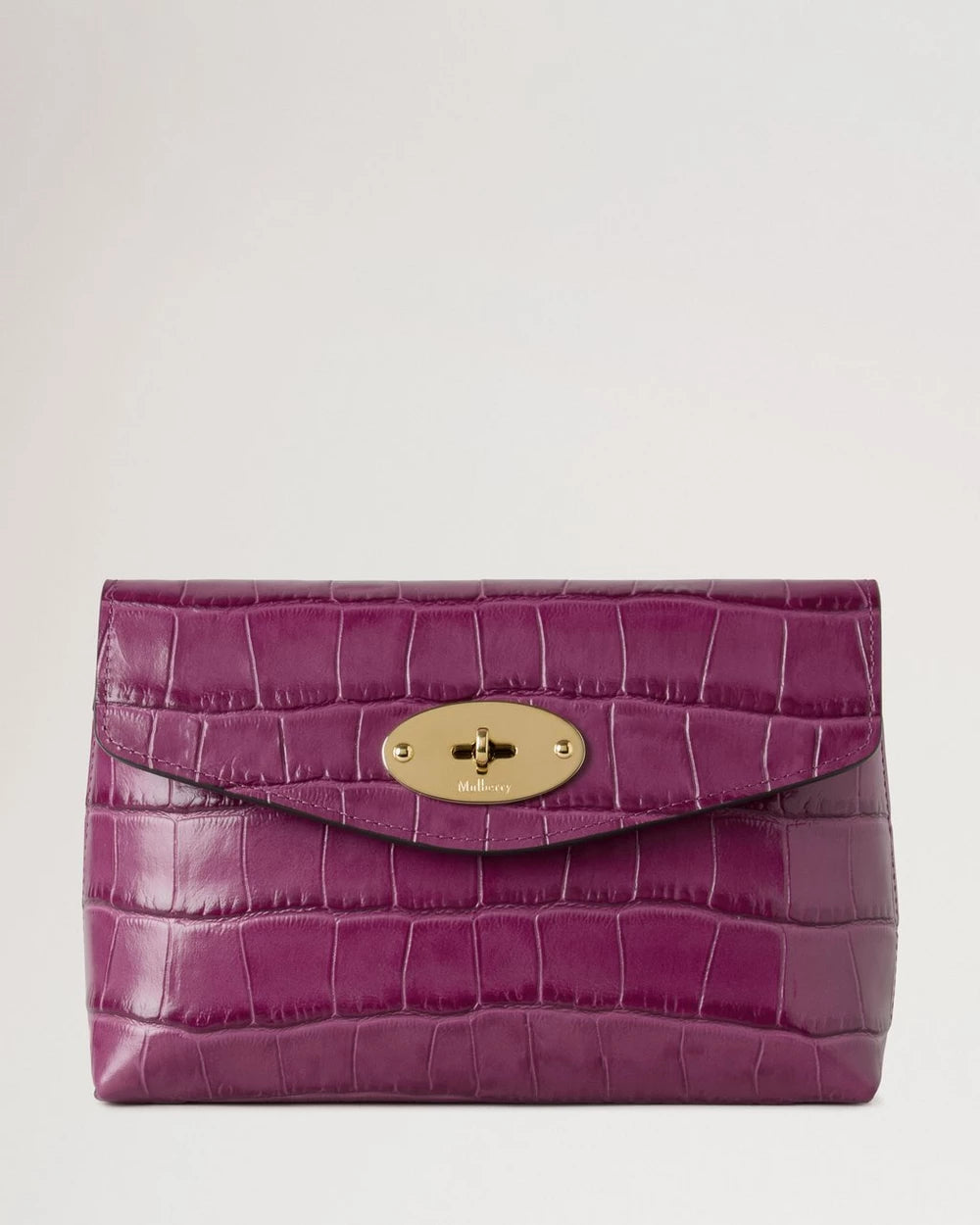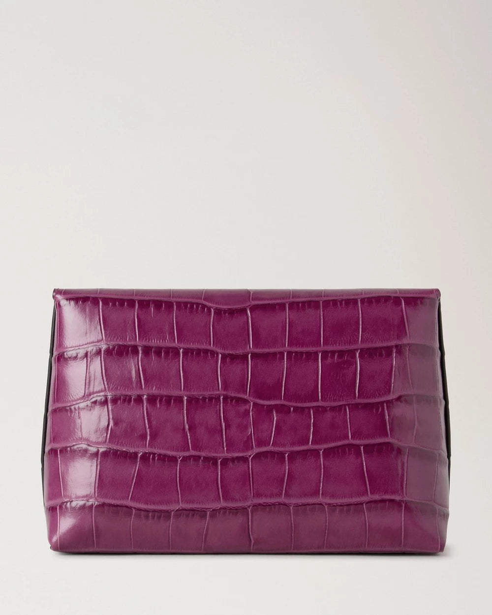 Darley Cosmetic Pouch, Shiny Small Croc - Orchid Bloom: