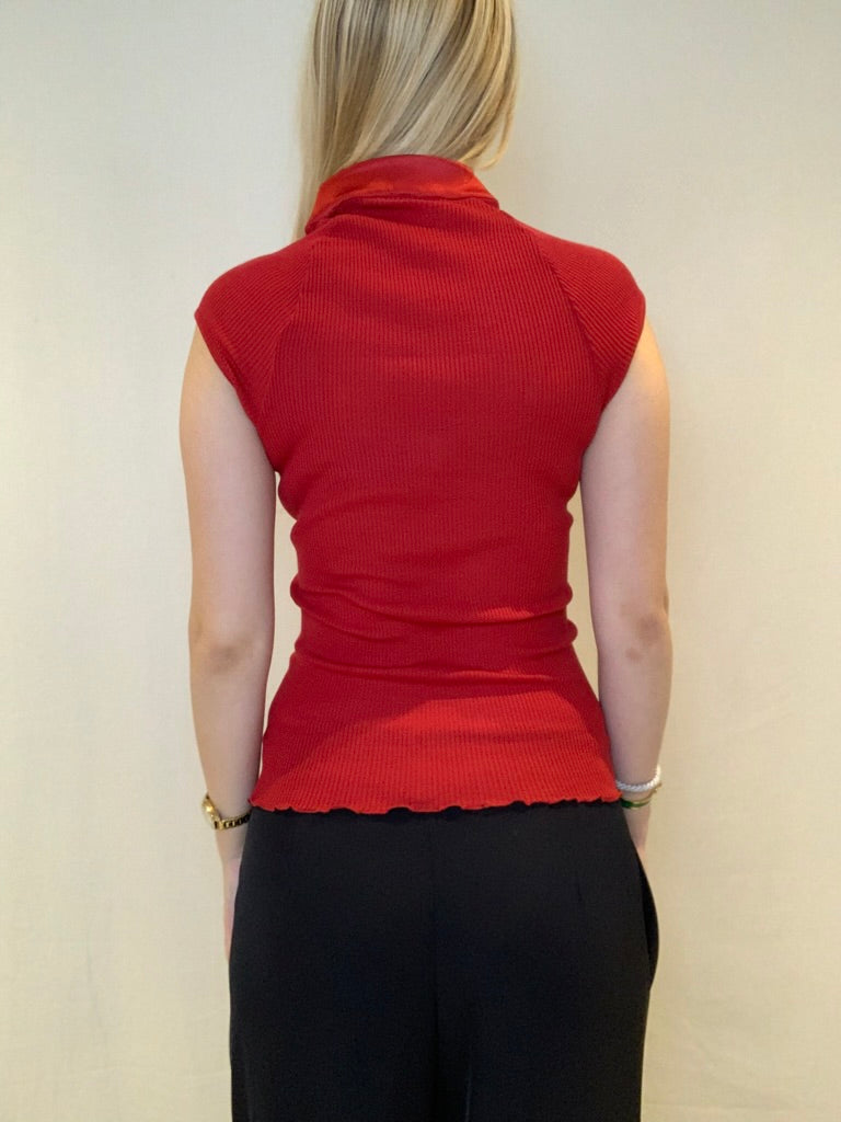 Feminin top i en eksklusiv blanding af Merino ekstra fin uld og ren silke i top kvalitet, med koreansk halsudskæring og tyl-detalje.