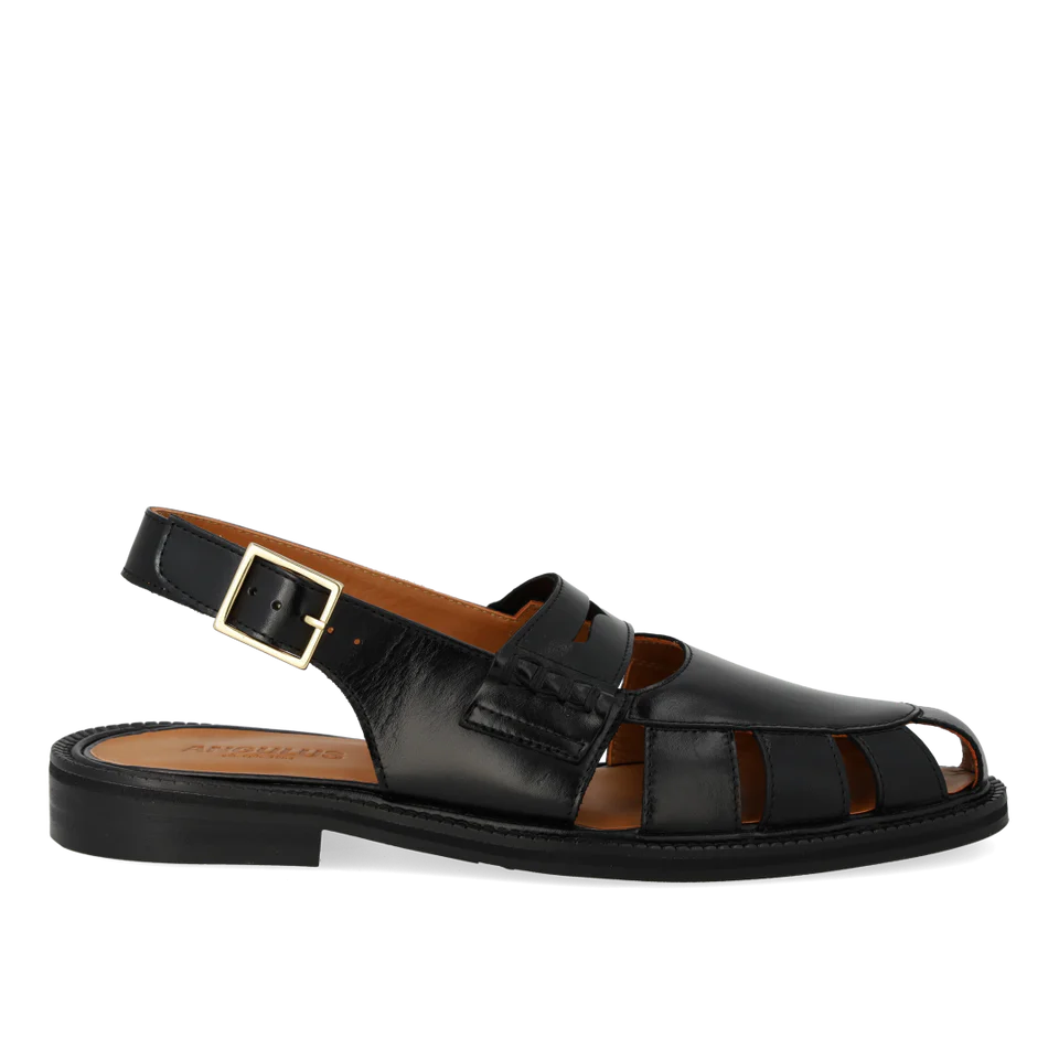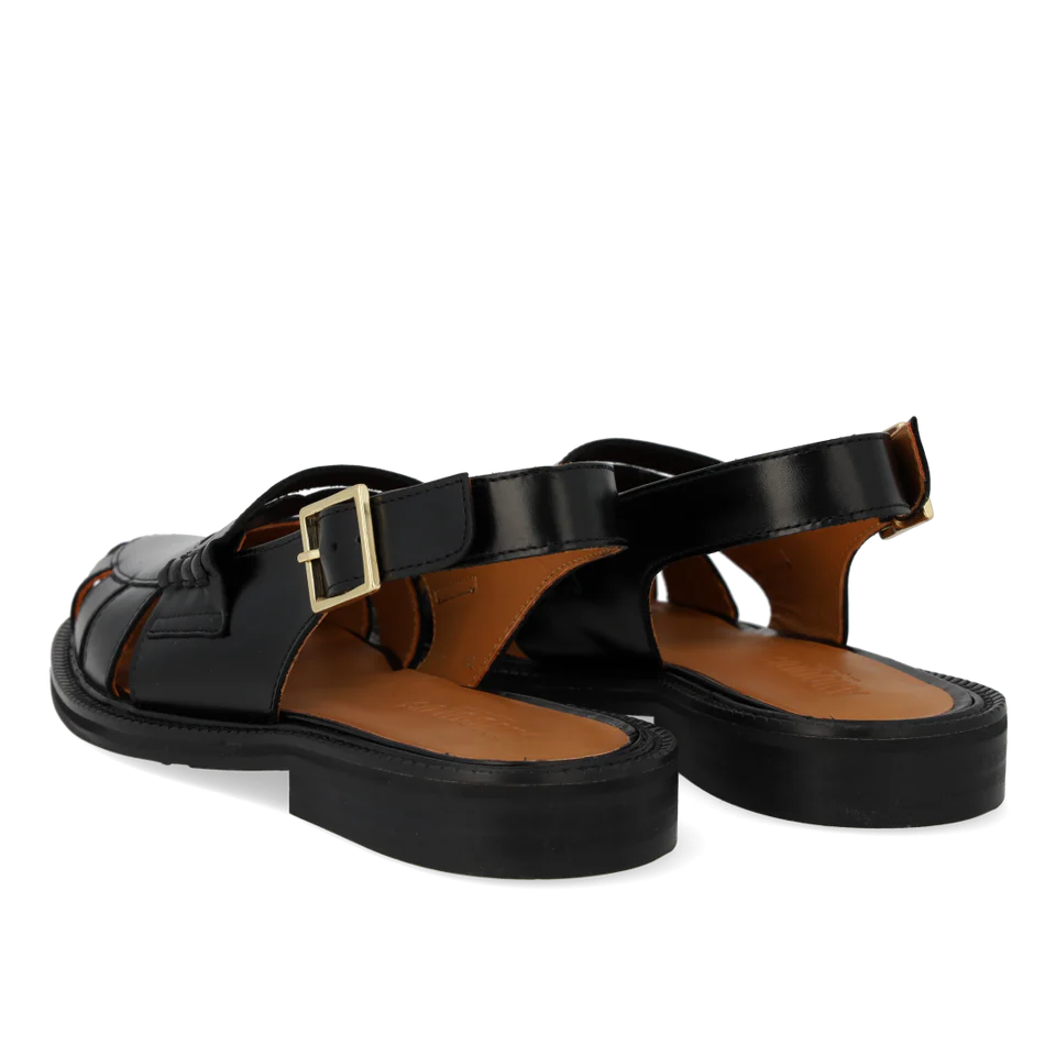 Penny loafer in leather with decorative cut-out pattern and open heel. The loafer features an almond-shaped toe, adjustable sling-back closure with gold buckle, padded insole, chrome-free leather lining and a light tunit sole with decorative stripe and rubber at the outsole for extra comfort and stability. Crafted in natural and breathable leather. Designed in Denmark and handcrafted with love in Portugal.