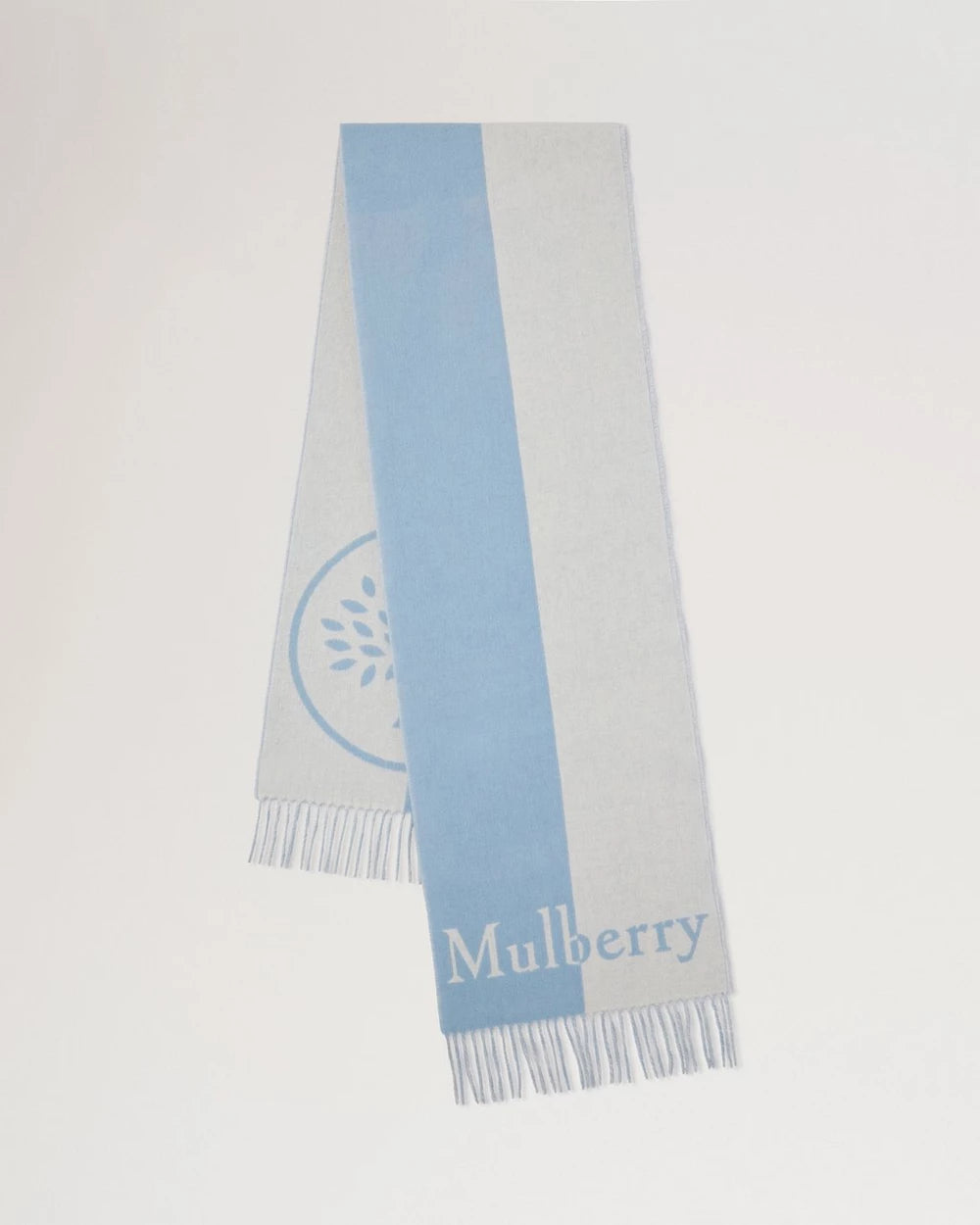Smukt og tidløst halstørklæde med Mulberry Logo og opdeling i de to farver, som giver et flot udtryk.