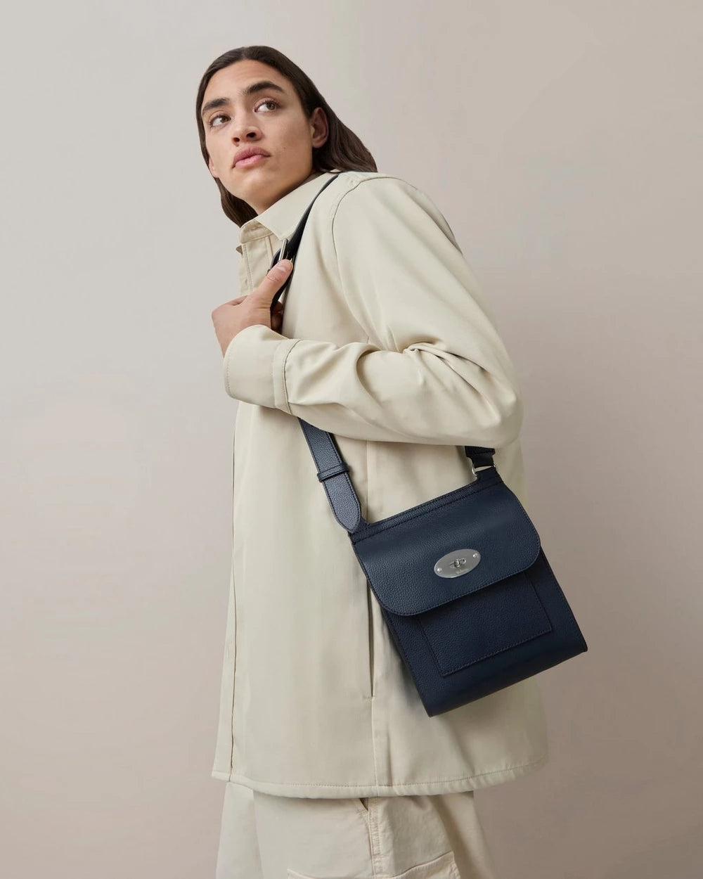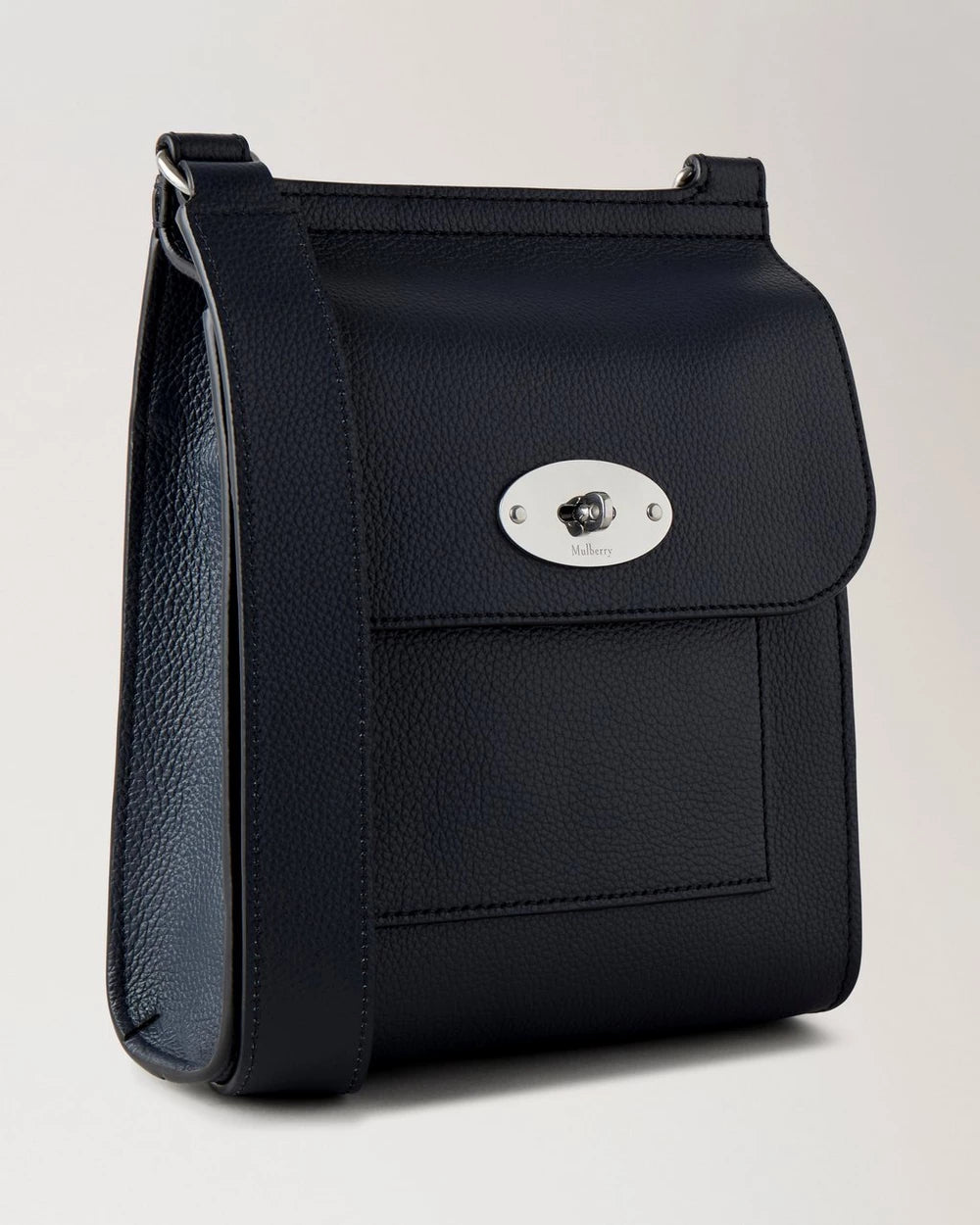 Den næst mindste udgave af den kendte klassiker; Messenger. Denne model har et uformelt udtryk med skulderrem i lærred. Remmen er med læder besætning, og er justerbar, således den også kan bruges cross body. Modellen har et stort rum og en lille smal udvendig lomme. Lukkes med det kendte "Postman´s lock"- med stål/silver hængsler og spænde.