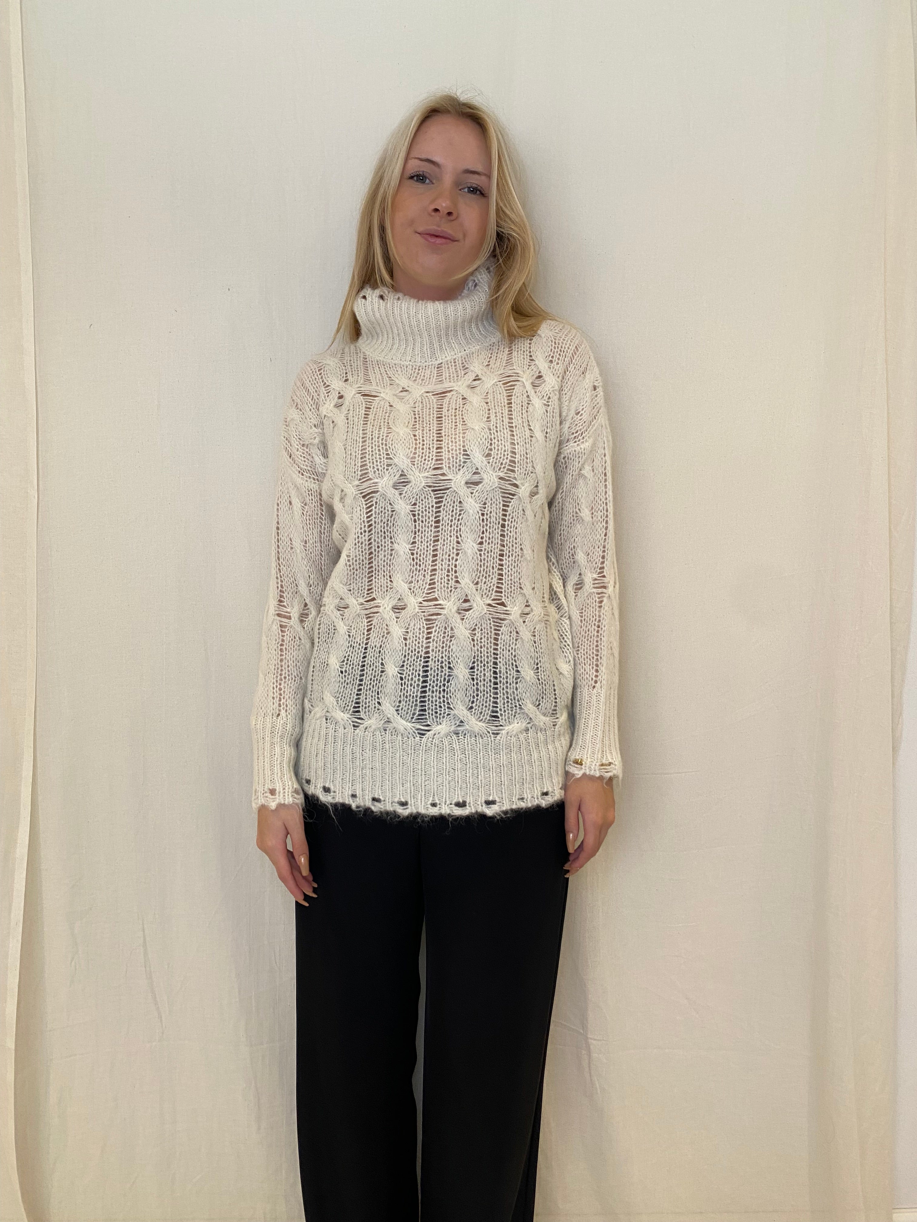 Denne florlette strik med høj hals, i det blødeste alpaca og fine detaljer, er en virkelig dejlig strik at have i basisgarderoben: Den har en lang række anvendelsesmuligheder og fylder ikke meget, under din jakke eller frakke. Er også god over en skjorte eller t-shirt på en kold dag.