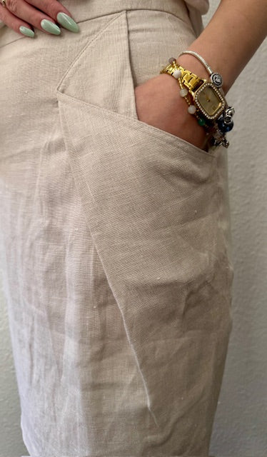 Härlig, klassisk och mångsidig kjol med fin detalj i fickan och dragkedja bak. Modellen träffar vanligtvis precis under knäet.