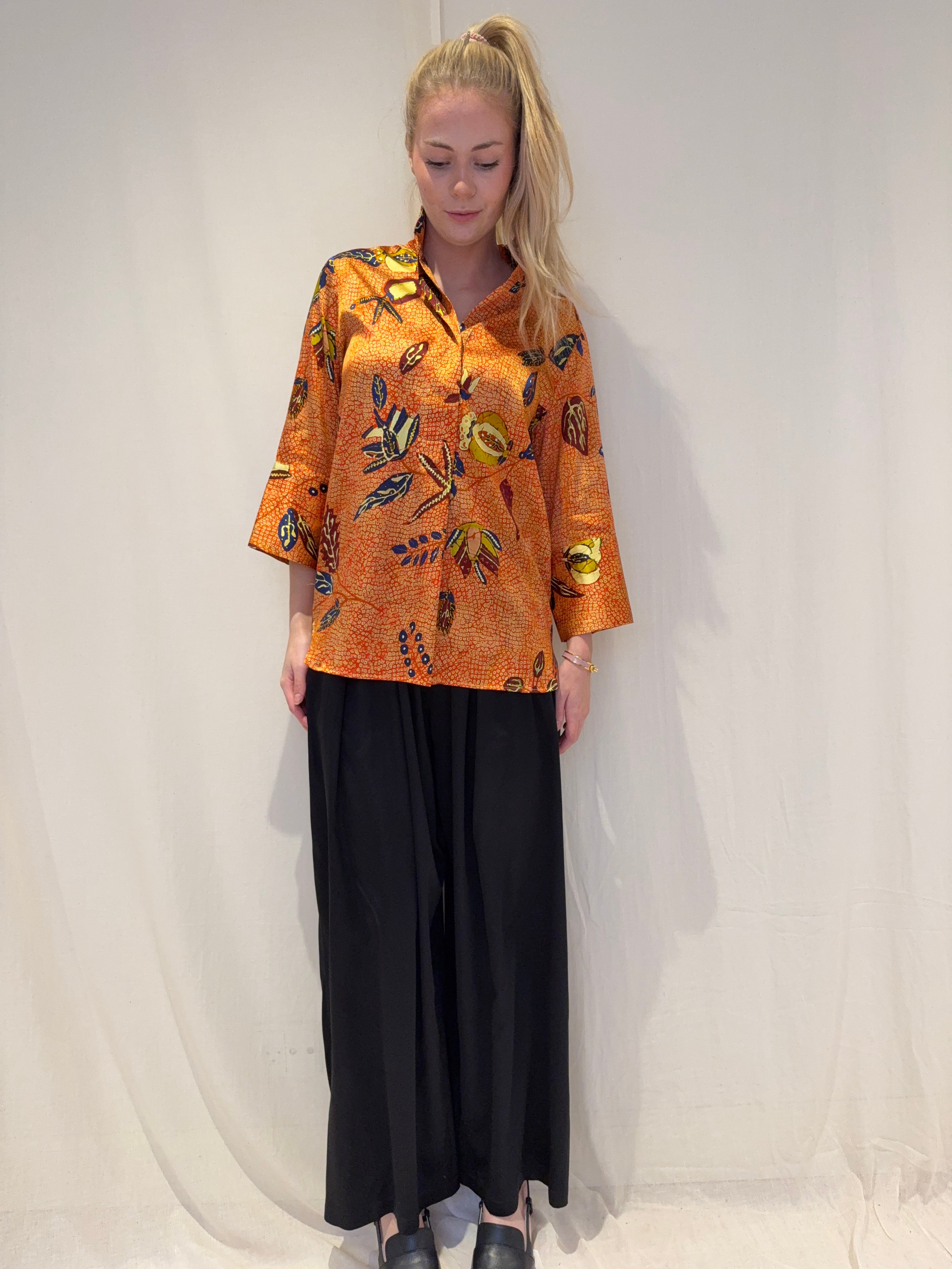 Färger: Orange grundfärg med blå svarta, bruna och gyllene nyanser